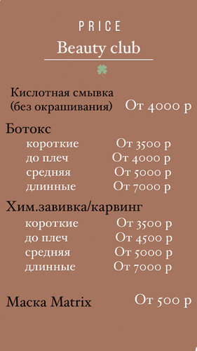 Замечательный салон! Начиная от атмосферы и заканчивая услугами — всё прекрасно. Удобное местоположение: находится в центре города и благодаря этому достаточно близко буквально до всего. Вежливый персонал! Если Вы, как и я переживаете за каждую мелочь — Вам всё подробно расскажут и покажут. Помимо этого не нужно бегать по всему городу. Здесь можно и сына с мужем подстричь (есть барбер), и себя, и маникюр, и ламинирование бровей с ресницами сделать. В общем: пяти звезд мало, чтобы полностью оценить работу салона 😅